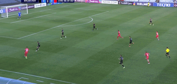 53' แมคอาเธอร์เตะฟรีคิกไปที่โซนสามวินาทีเพื่อสร้างภัยคุกคาม และระยะ 12 หลาก็สายเกินไป