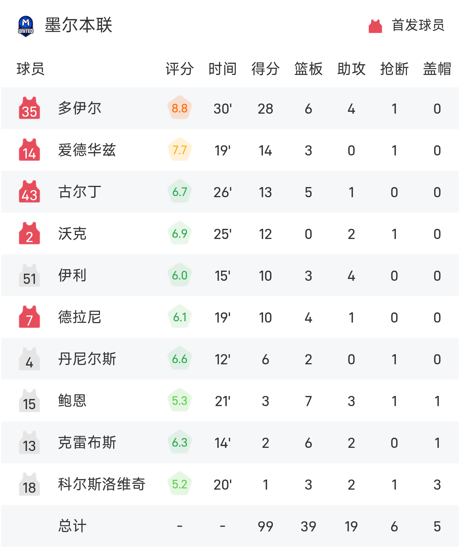 ดอยล์ทำคะแนนสูงสุดในเกมได้ 28 แต้ม 6 รีบาวน์และ 4 แอสซิสต์ นำเมลเบิร์นยูไนเต็ดคว้าชัยชนะ