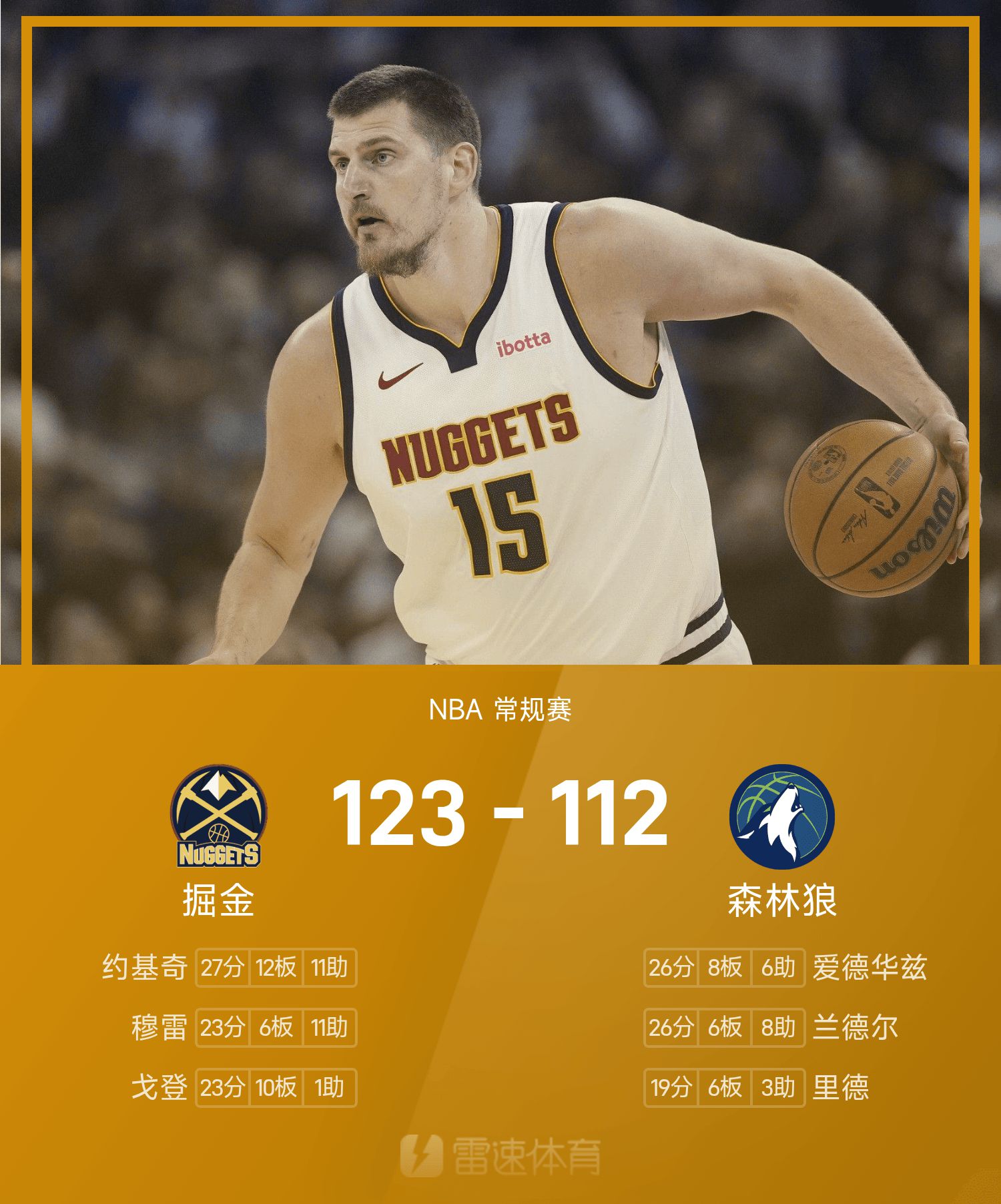 6686 กีฬา ข่าว 16 พฤศจิกายน ในฤดูกาลปกติของ NBA 25/26 Timberwolves เผชิญหน้ากับนักเก็ต จบเกม ทิมเบอร์วูล์ฟส์ แพ้ นักเก็ตส์ 112-123 โยคิชทำคะแนนสูงสุดในเกม 27 แต้ม 12 รีบาวด์ 11 แอสซิสต์ นำทีมนักเก็ตไปสู่ชัยชนะ