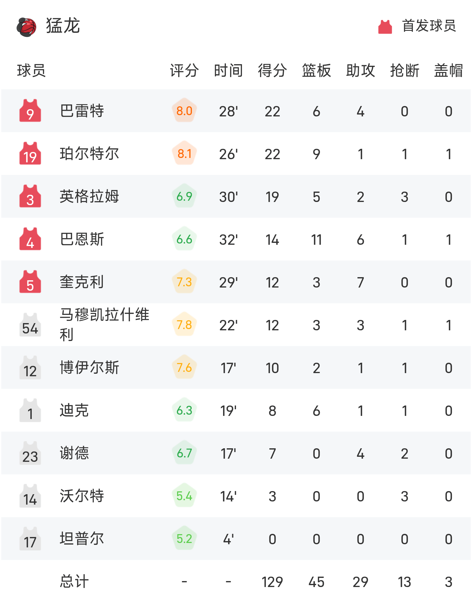 บาร์เร็ตต์ทำ 22 แต้ม 6 รีบาวด์ 4 แอสซิสต์ นำทีมคว้าชัยชนะ เซียคัมทำคะแนนสูงสุดในเกม 30 แต้ม 4 รีบาวด์ 3 แอสซิสต์